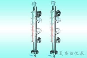 高压磁翻板液位计主体外的翻板箱受主体内浮子(具有定向磁性源,按不同介质和压力针对研制)的作用促其翻板翻动并显示红白颜色,并随浮子的移动指示不同的液面高度。在指示器左侧配有醒目的刻度标尺,从而使液位的指示显得更加清晰。